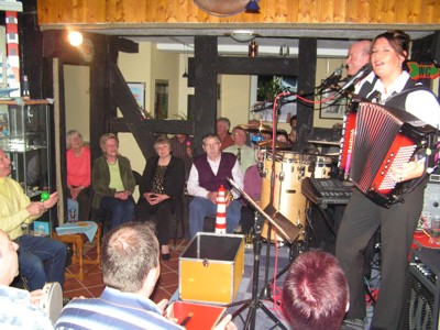 Die Akkordeonvirtuosin Penny Simms hatte sich am Freitag - 11. April 08 - mit ihrem Partner Hotte zum Konzert im Café Fresenhof angesagt. Ein "irrer Abend" - lässt sich so ein Musikabend noch toppen? Eine Penny in Hochform begeisterte über zwei Stunden mit ihrem Akkordeon, hervorragend auch gesanglich unterstützt von Hotte am Schlagzeug. Musikprofis der absoluten Spitzenklasse! Die musikalische Weltreise führte über Amerika, nach Argentinien, Frankreich nach England, über Deutschland nach Spanien, Italien, Österreich, Russland, Mexico, Brasilien bis nach Cuba - jeweils mit einer Auswahl der bekanntesten Melodien aus diesen Ländern.