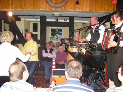 Es wurde geklatsch und gejubelt und es gab stehende Ovationen. "Lets Twist again" brachte eine Premiere im Fresenhof: Eine fast perfekte Tanzshow vor der Bühne! Mit großer Begeisterung wurde das Duo von den mit Rhythmusgeräten aller Art ausgestatteten Zuhörer kräftig unterstützt. Nach vier Zugaben wurden Penny und Partner nur ungern aus Lüerdissen "entlassen". Zahlreiche Musikliebhaber blieben aber noch etliche Stunden im Fresenhof und ließen einen "irren Abend" bei allerbester Stimmung ausklingen.